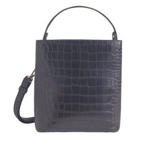 AOTA Tote Bag Elena Vegan Black Leather Bucket Mock Croc Embossed Medium NWT