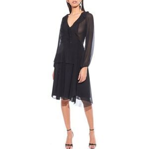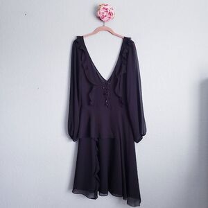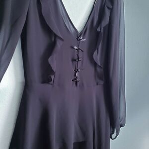 A.O.T.C Sexy Black Sheer Peekaboo Ruffle Long Sleeve Dress