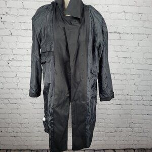 Missing belt and cuff bands, as pictured. No size label. Measurements indicate a men's size small. Please refer to actual measurements below.