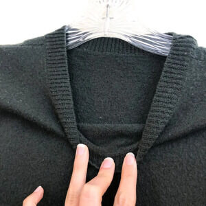 Preloved with no original brand or size tag, holes along the knit hem, and wear throughout, especially on the elbows and light felting on the underarms.