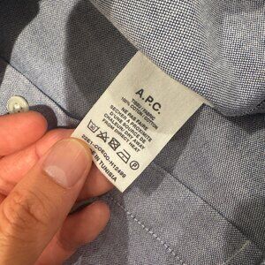 PREOWNED APC GREG LOGO OXFORD GRAY SHIRT IN MEDIUM.