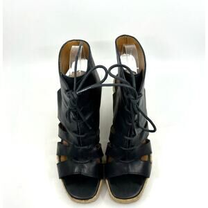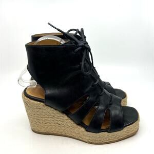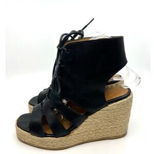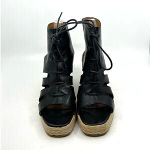 A.P.C. Black Leather Espadrille Wedge Sandals Women's 10 US