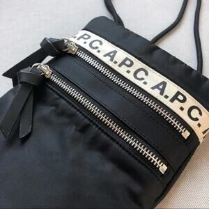 A.P.C. Black Nylon Logo Repeat Neck Pouch Crossbody Bag