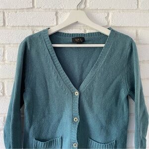 A.P.C. Blue 100% Wool Cardigan Sweater Buttons Pockets Women’s Size Small