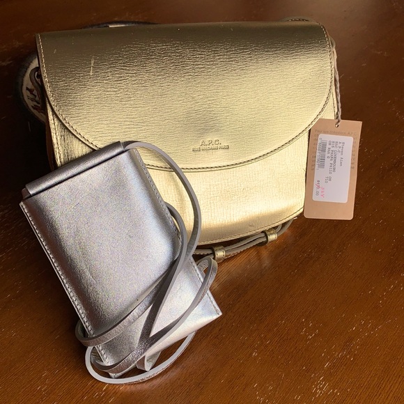 New with tags and dust bag (A.P.C. shoulder bag) and new Building Block cellphone purse w/o bag or tags. Bought at sample sale.