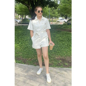 APC Combinaison Hills Romper Denim Off-White Zip Short Sleeve Sz 36 IT / 0 US
