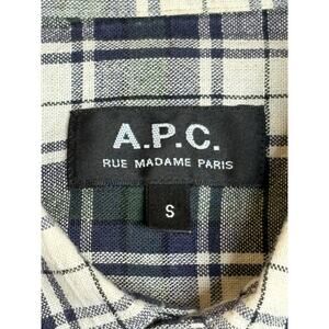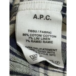 A.P.C. Cotton Linen Plaid Shirt Navy Green Cream Small