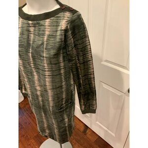 A.P.C. Green & Pink Tie Dye Boat Neck Dress w/ Shoulder Buttons, Size Medium