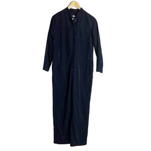 A.P.C. Justine Navy Blue Corduroy Long Sleeve Button Front Jumpsuit Size S