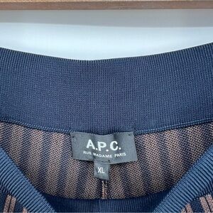 A.P.C. Lucy Striped Jacquard Knit Track Pants in Navy Stripe Size XL
