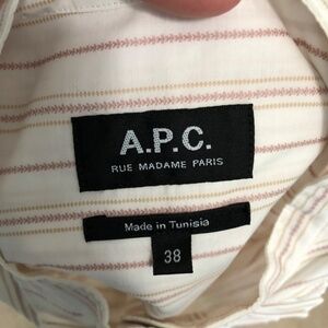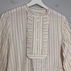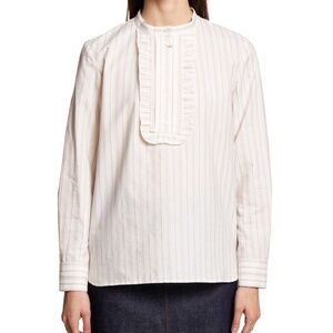 APC Madeline Blouse Cotton Striped Ruffle Button Size 38