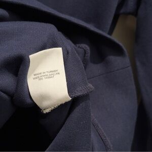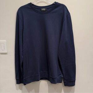 A.P.C. Navy Crewneck Sweatshirt w/ Brown Leather Elbow Patches Minimalist XL