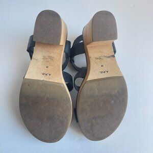 A.P.C. Navy Platform Sandals with Wood Block Heels