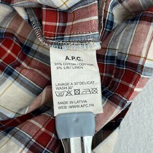 Tags: A.P.C. dress, plaid dress, off-shoulder dress, women's dress, cotton dress, linen dress, bow tie dress, medium dress, red plaid, summer dress, casual dress, Latvian clothing, A.P.C. fashion