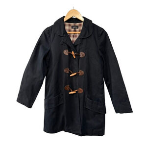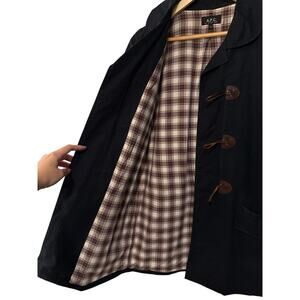 APC Paris S Wax Coated Leather Toggle Duffle Coat $495 Plaid Lined Jacket Black