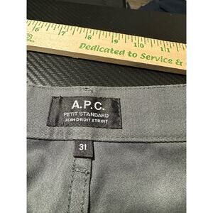 APC Petit Standard Jeans in Grey. Slim Straight Fit. Button fly. 10 Inch Rise. Approx 28 Inch Inseam. Size 31 Womens. Measurements in pics.