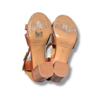 A.P.C. Salma Brown Leather Heeled Sandals with Crisscross Straps Block Heel 38