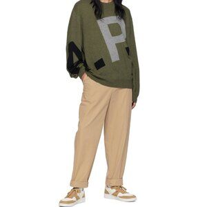 A.P.C. WOOL LOGO SWEATER IN KHAKI SIZE SMALL