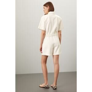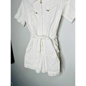 A.P.C. White Cotton Denim Collared Gold Zipper Front Tie Waist Romper Size 38