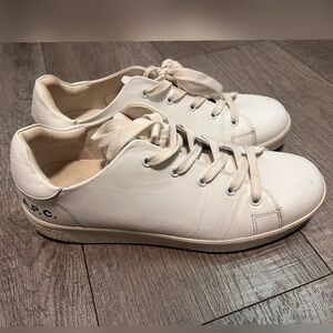 Size 41 EU which is equivalent to a US 8 Low-top buffed calfskin sneakers in white. Round toe. Tonal lace-up closure. Padded collar. Eyelet vents at inner sides. Logo embossed in navy at heel counter. Textured rubber midsole in off-white. Treaded rubber outsole in off-white. Supplier color: White Preloved A few scuffs on the top, but overall in good condition Retail $325 Ships right away * Our goal is to provide you with an excellent product at an excellent price! * Shop with confidence with many items sold! * Smoke free home. * Fast shipping. * Accepting all reasonable offers. * Bundle to save on shipping costs * Questions... Feel free to send us a message * Thank you so much for considering supporting my small business