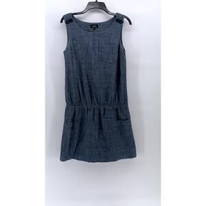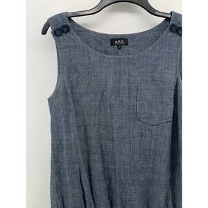 A.P.C. Women's Blue Chambray Crewneck Sleeveless Ruffle-Hem Knee Dress SZ S