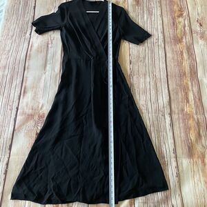 APC dress Womens 36 Black Mathilda Tie Crepe Viscose Vneck Pleats Classic