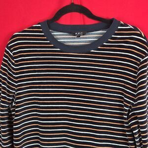 A.P.C.Striped Velour Sweatshirt Navy Blue Mens Size Medium
