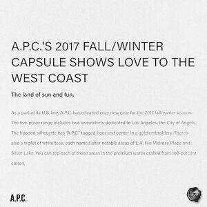 The brand that gave you your first pair of raw selvedge denim jeans turned 30 years old in 2017, AND the minimalist French label also launched the A.P.C Made in the USA capsule collection. The release marked the start of a new sub-brand, A.P.C.U.S., featuring sweatshirts and tees made in Los Angeles. This tee shirt is from the 2017 fall/winter seasonal capsule collection made to honor it’s three Los Angeles Locations.