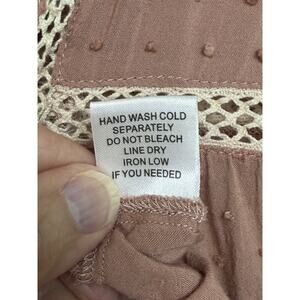 APEACH Women’s Top Blouse Sz Small Mauve Textured Lace Trim Long Sleeve Peasant