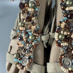 APEPAZZA WOMEN'S PANAREA WEDGE SANDALS, BEIGE SUEDE, Size 40