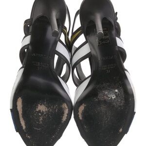 APERLAIAperlai Leather Slingback Sandals White Colorblock Pattern Multistrap