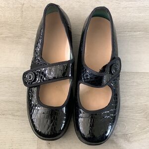 APEX MARY JANE DIABETIC STYLE SHOE Leather 9M black patent croc style textured
