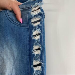 Style: Women’s Juniors Aphrodite Y2K High rise ripped destroyed distressed high rise denim Capris Shorts