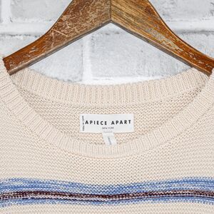 APIECE APART Women's Baja Oversize Crew Sweater Cotton Knit Light Stripe Sz XS
