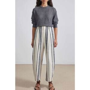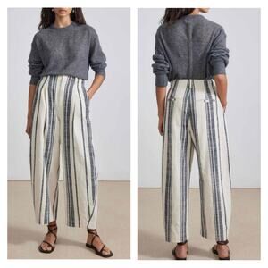 APIECE APART Bari Crop Trouser Pant 6 Cream Bold Stripe Barrel Balloon Baggie