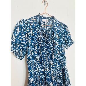 APIECE APART Blue White Floral Cotton Las Alturas Mini Dress Size Medium
