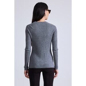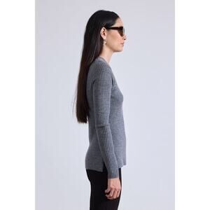 Crew neck, fitted silhouette, rib edge detail at neck hem and cuffs, slits at side seams