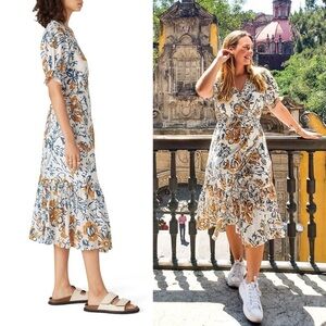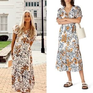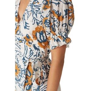 APIECE APART Floral Cotton Puff Short Sleeve Ruffle Hem Wrap Tie Waist Dress 4