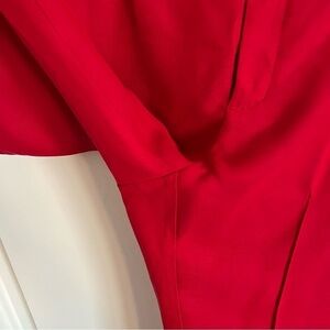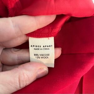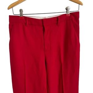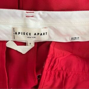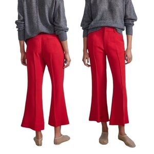 APIECE APART Rene Flare Trouser Pant. Made in India. Cropped, flared hem, front slash pockets, welt pockets at back, tailored waistband with waistband curtain, hook and bar closure. Vibrant red color. Still for sale and originally $445!