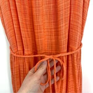 Apiece Apart Saluda Maxi Dress in a Cotton Blend Gauze. Nasturtium colorway, kind of a coral/orange. Lightweight and breezy, fully lined. Fixed spaghetti straps, scoop neck. Can be worn loose and billowy, or has a tie for the waist. Pit to Pit has quite a few inches of play. Great condition!