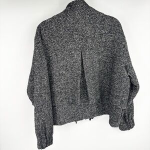 APIECE APART Selva Herringbone Crop Bomber Jacket Size Large Black White Wool