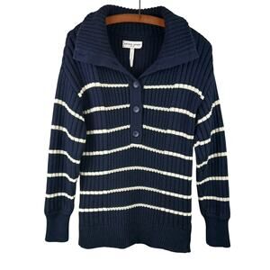 APIECE APART Tuckernuck SZ XS Navy And Cream Paloma Mock Sweater Cotton/Cashmere