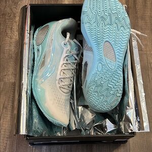 Stylish APL athletic shoes. Light blue and white design. Perfect for sports and casual wear.