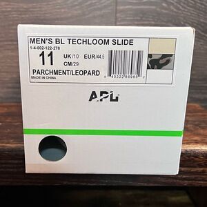 APL Big Logo TechLoom Slides in Parchment/Leopard. Unisex, Men Size 11/Ladies 12.5. New in Box!