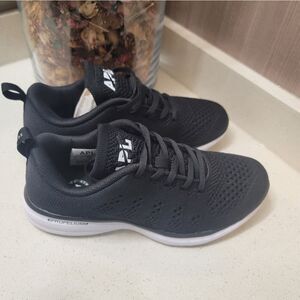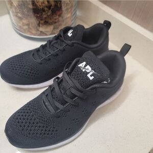 Sleek black athletic shoes by APL. Lightweight and breathable design. Perfect for workouts.
