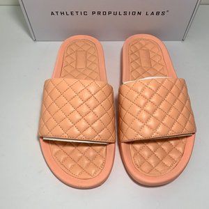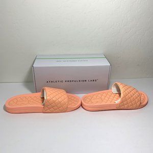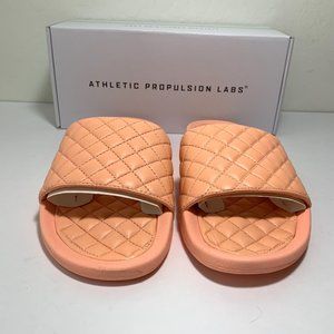 NEW APL Lusso Slide Sandals Quilted Leather Slip On Flats Neon Peach Size 9 NIB