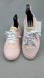 APL Techloom Phantom W athletic shoes in a light pink knit. These lightweight sneakers feature white laces and a comfortable padded collar. The sole is a light pink rubber. The insoles show some signs of wear and the tongue has some wear and color change. The insoles have some wear on the logo. The pictures show the condition of the shoes and any wear areas.