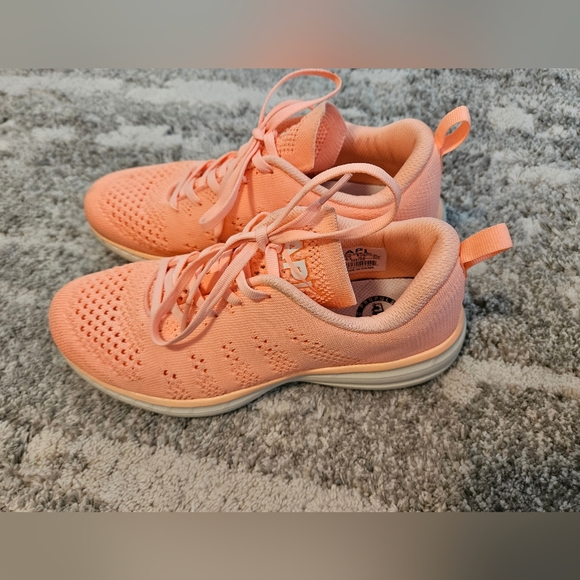 bright neon peach colored, size 8