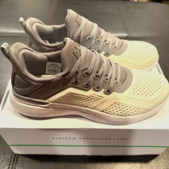 Women's APL Techloom Tracer. Size 6.5. Color: Cement / Pristine / White. Great sneaker for all types of outfits and for working out!