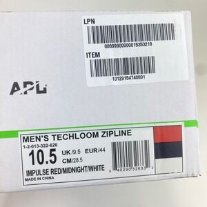 Keywords: APL, Techloom Zipline, Running Shoes, Sneakers, Men's Shoes, Athletic Shoes, Impulse Red, Knit Sneakers, Size 10.5, Training Shoes, Comfortable Shoes, Performance Shoes, Activewear, Gym Shoes